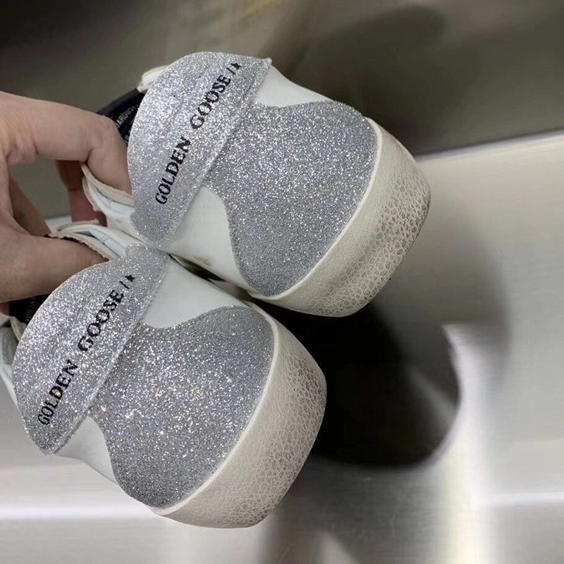 Super-Star with golden glitter star and blue matte cowhide leather heel