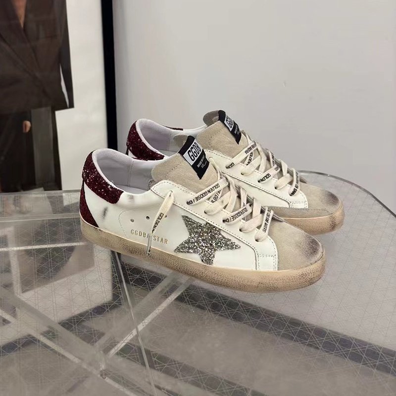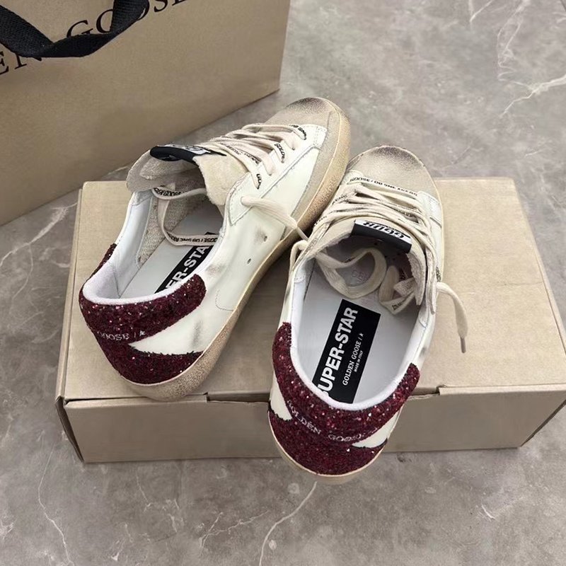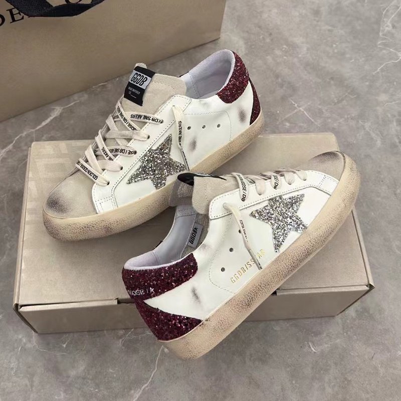 Super-Star with pink glitter star and golden matte cowhide leather heel