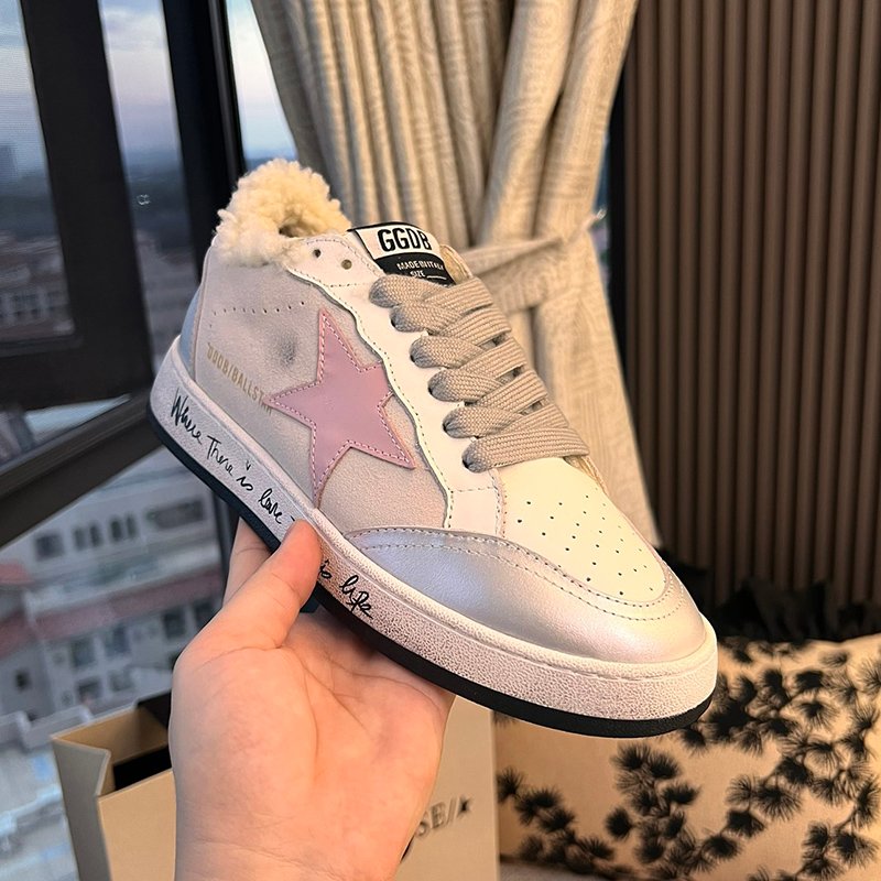 Super-Star with grey suede leather star and silvery matte cowhide leather heel