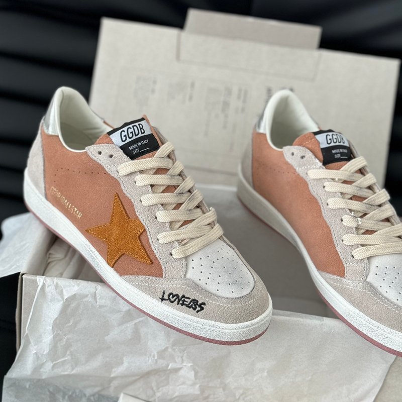 Ball-Star with blue matte cowhide star and pink matte cowhide leather heel