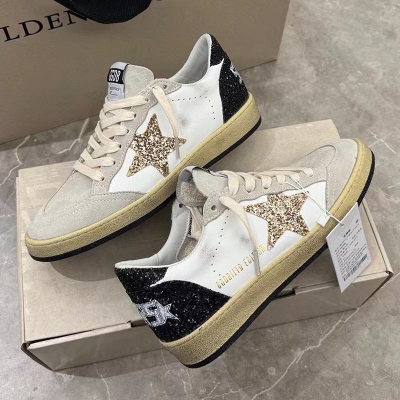 Ball-Star with white matte cowhide star and black matte cowhide leather heel