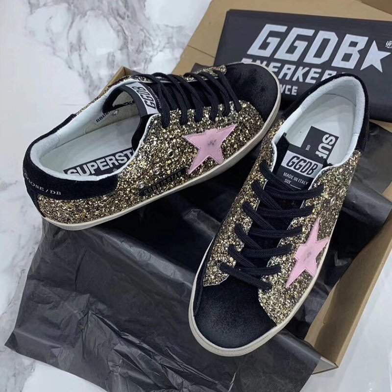 Super-Star with pink matte cowhide star and silvery glitter heel