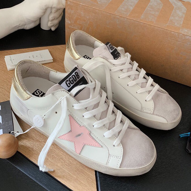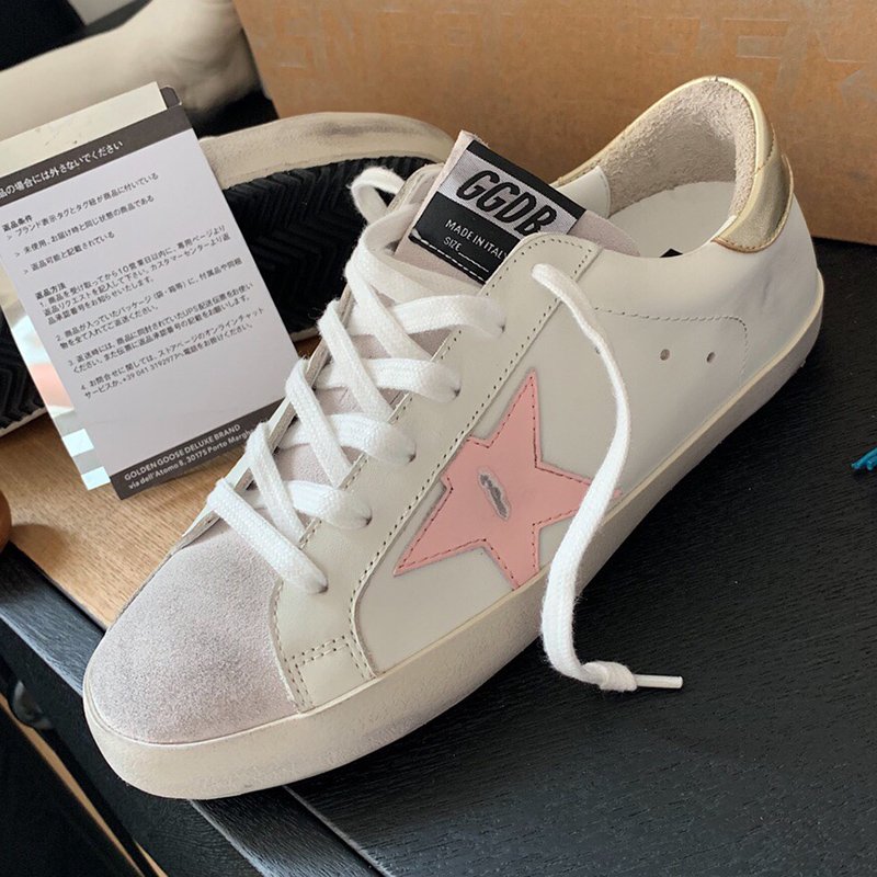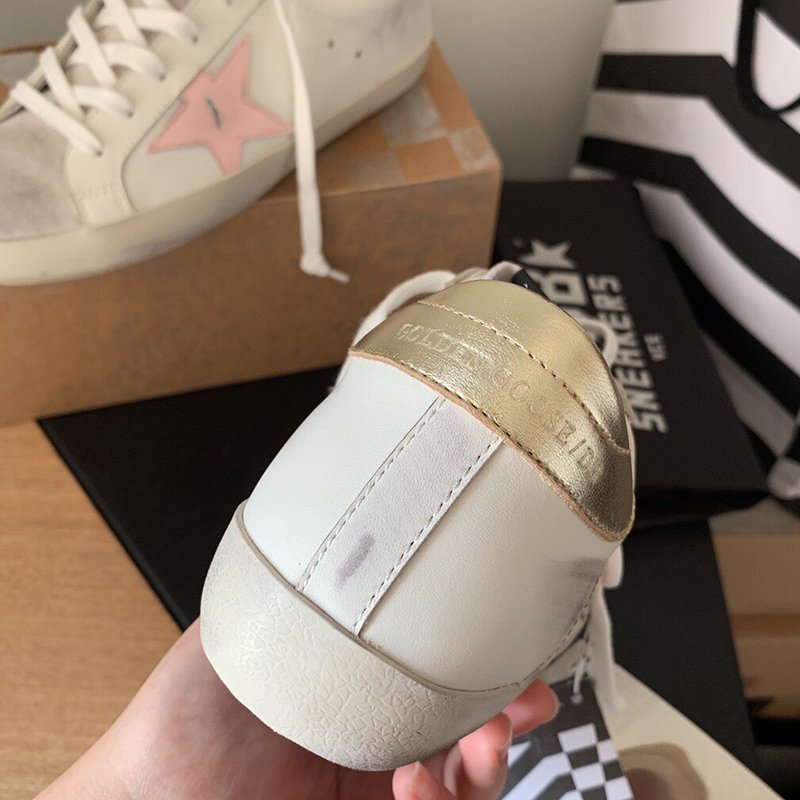 Super-Star with pink matte cowhide star and golden matte cowhide leather heel
