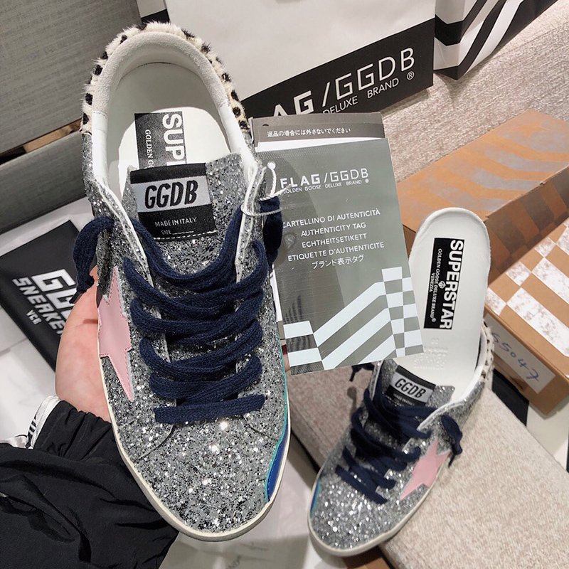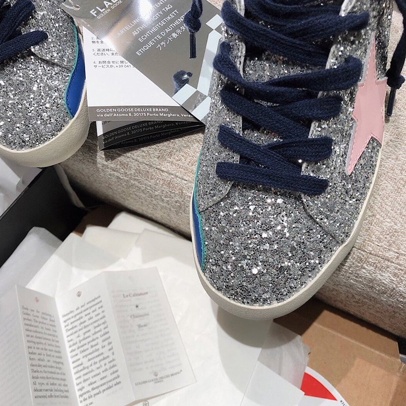 Super-Star with silvery matte cowhide star and silvery matte cowhide leather heel