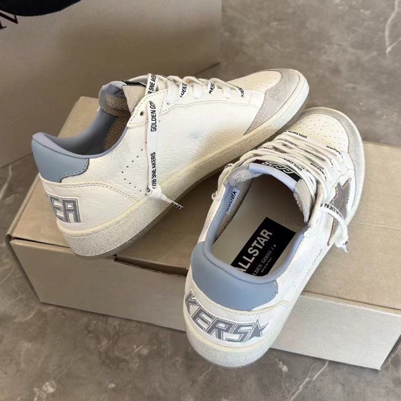 Ball-Star with silvery matte cowhide star and blue matte cowhide leather heel