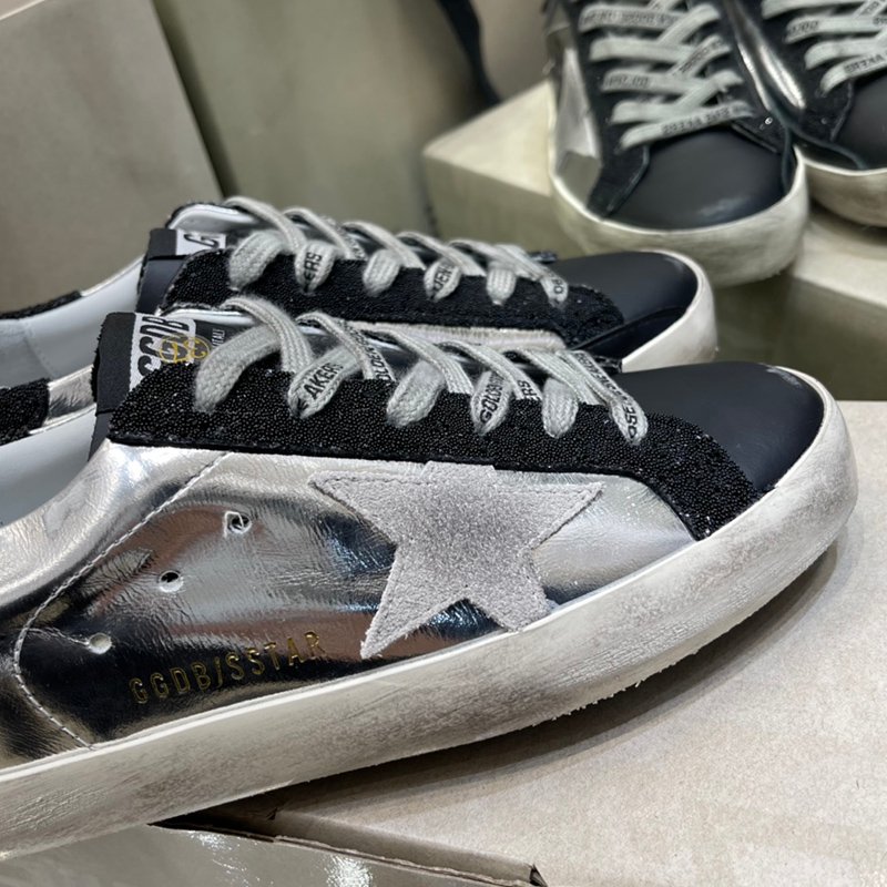 Super-Star with grey suede leather star and black matte cowhide leather heel