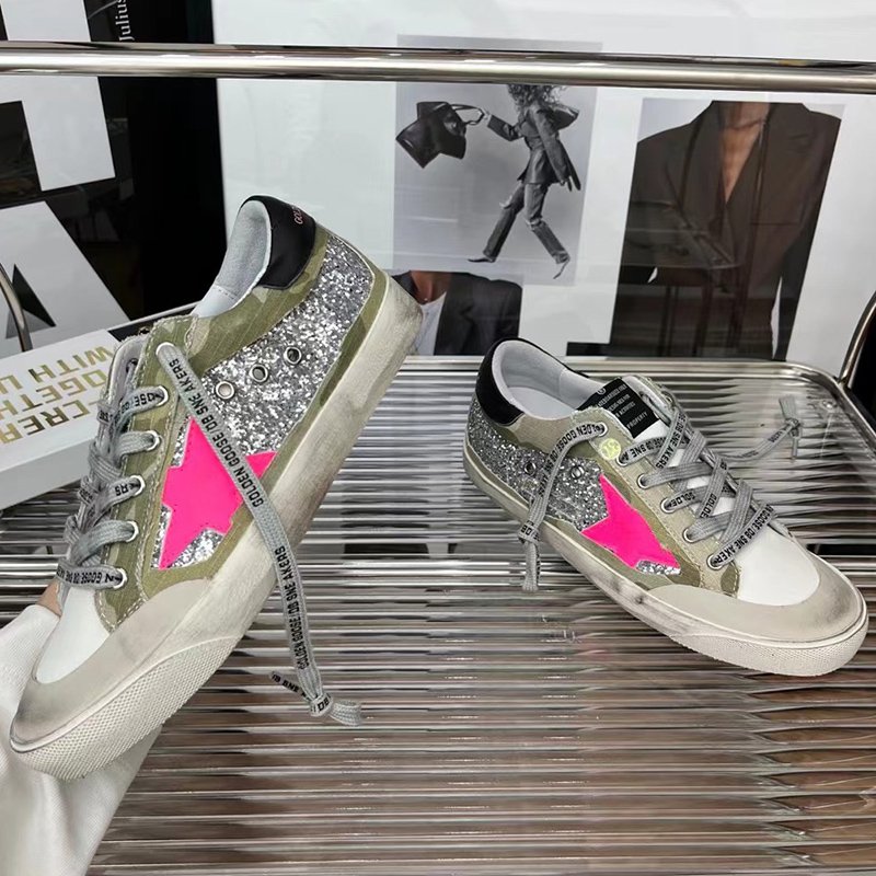 Super-Star with black glitter star and green matte cowhide leather heel