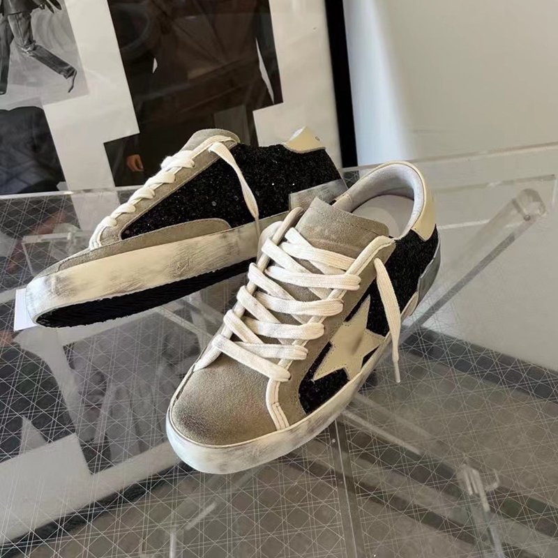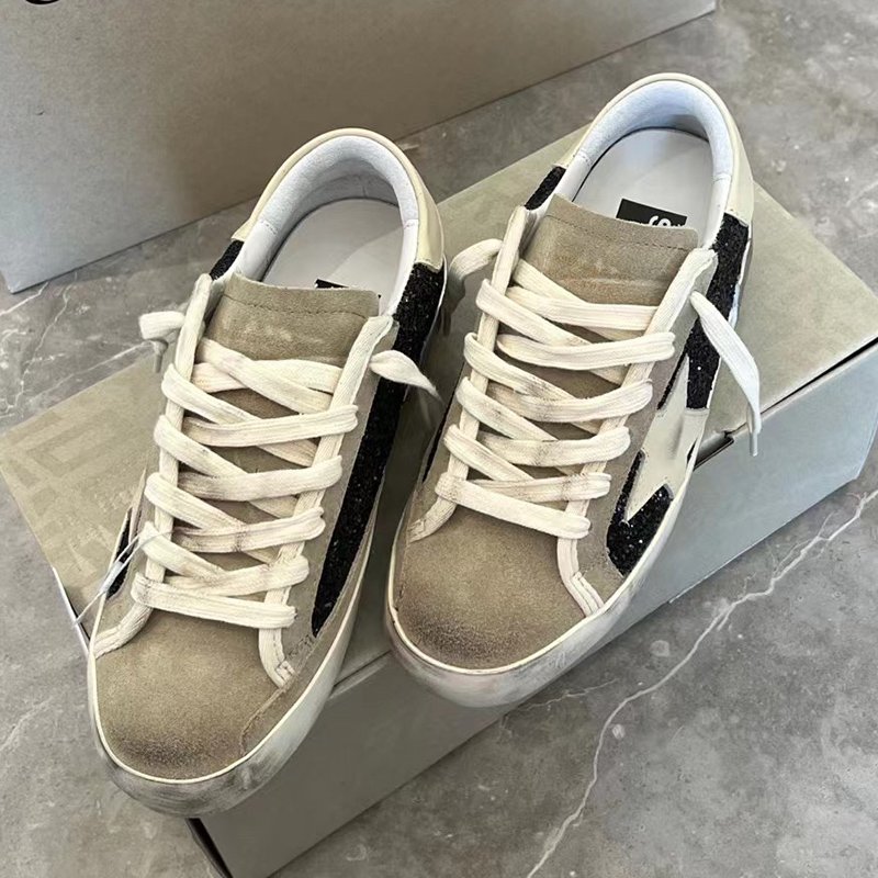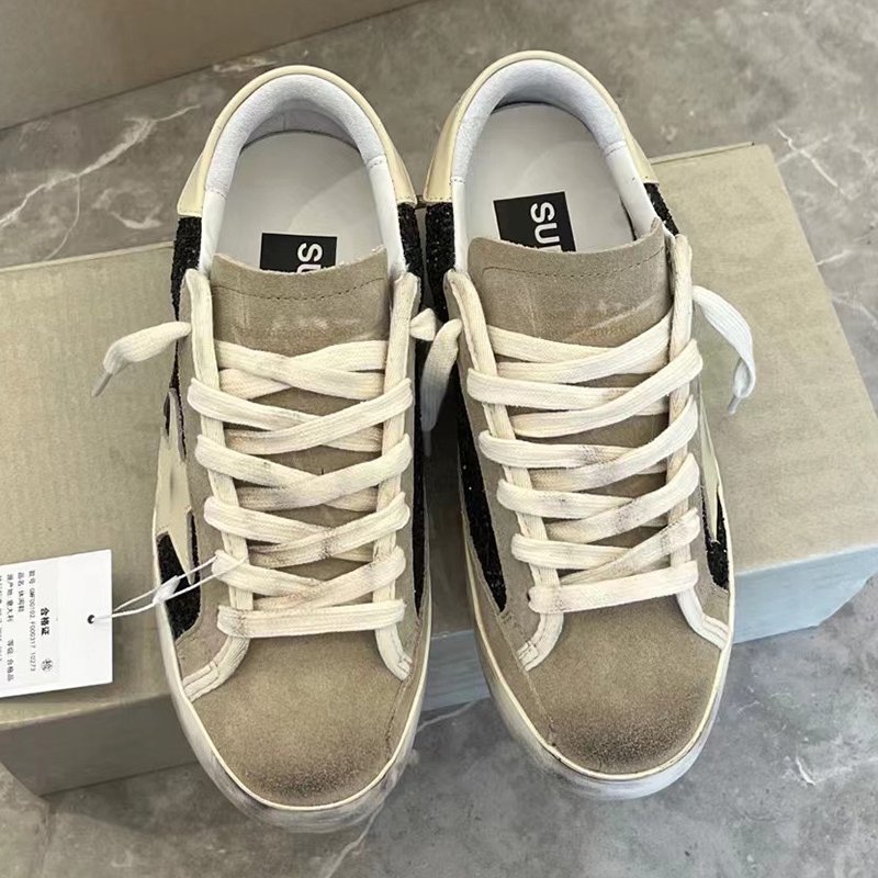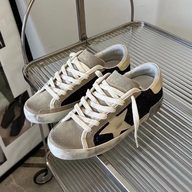 Super-Star with grey suede leather star and white matte cowhide leather heel