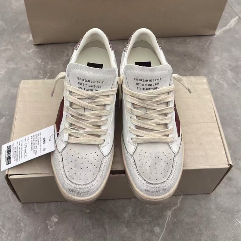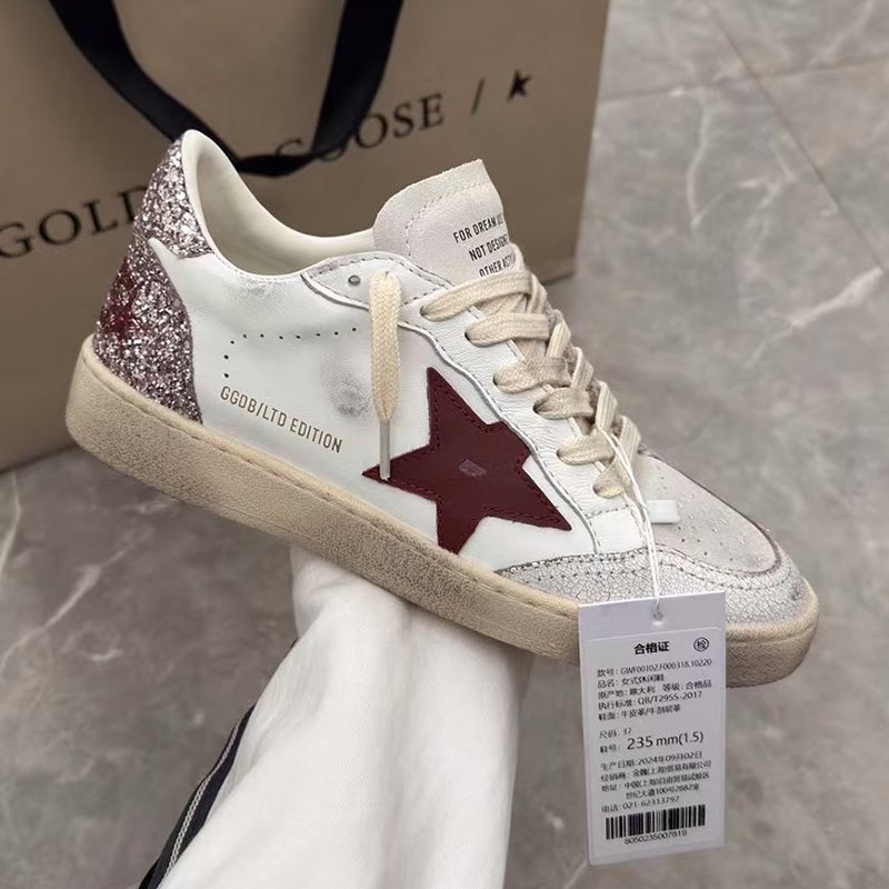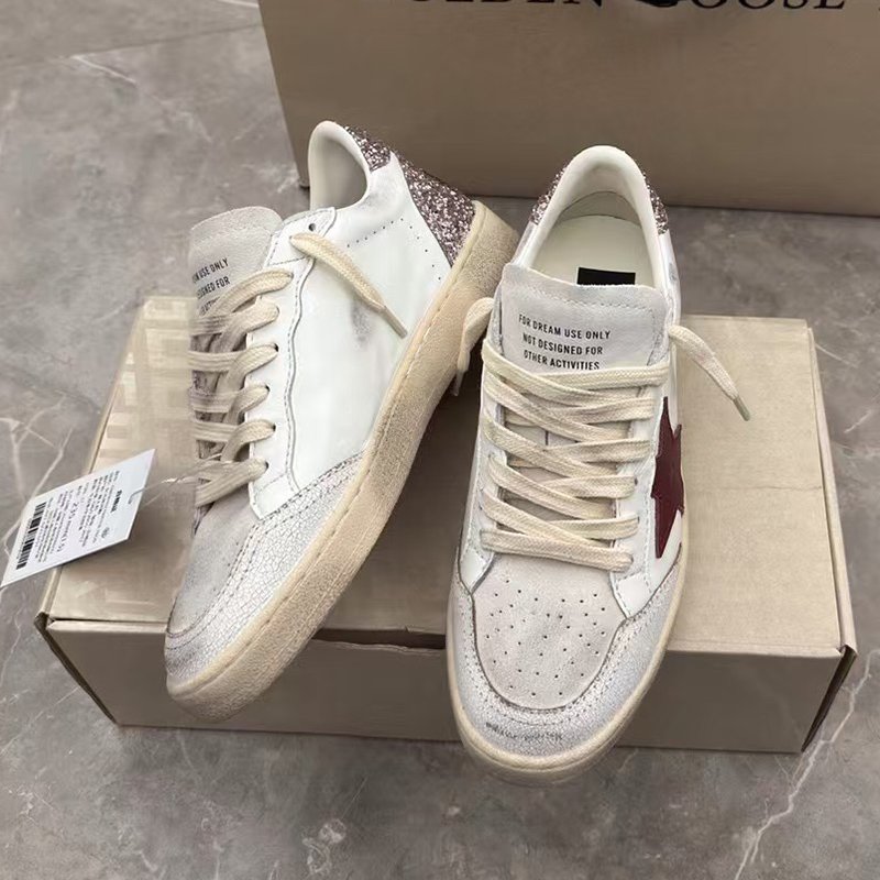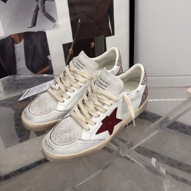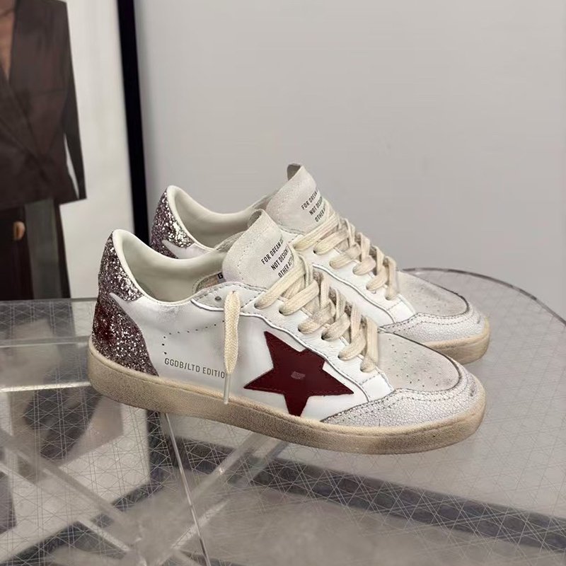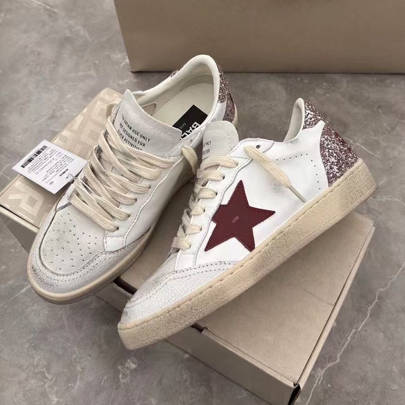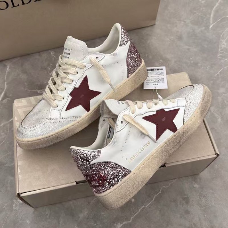 Ball-Star with red matte cowhide star and pink glitter heel