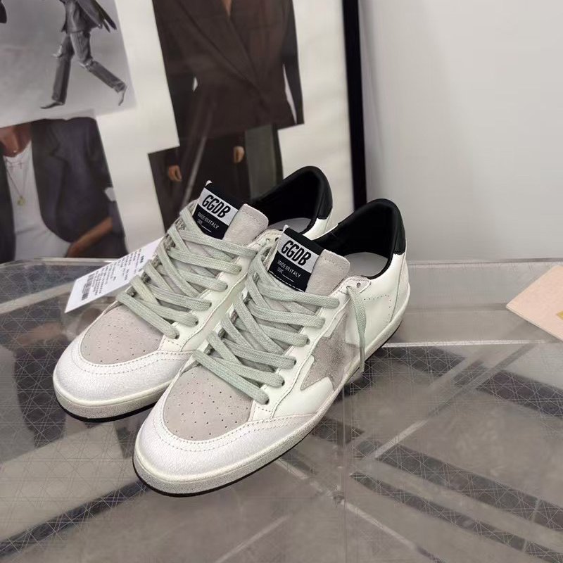 Ball-Star with silvery glitter star and golden matte cowhide leather heel