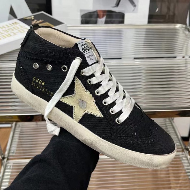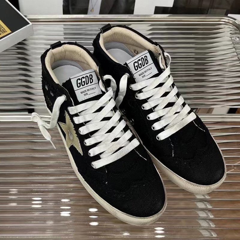 Mid Star with golden matte cowhide star and black fabric heel