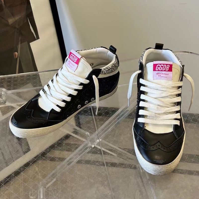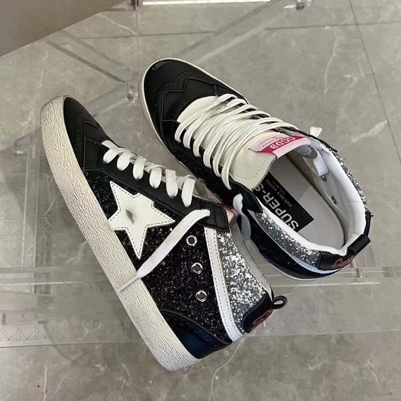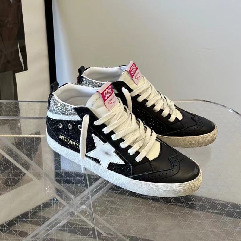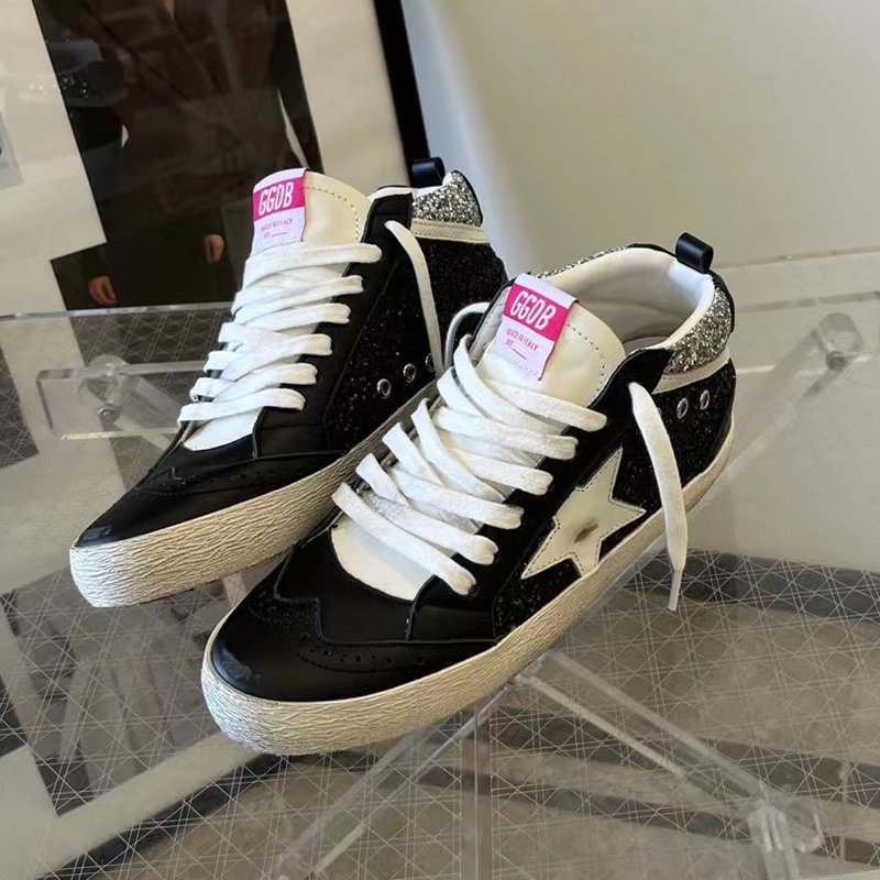 Mid Star with white matte cowhide star and black matte cowhide leather heel