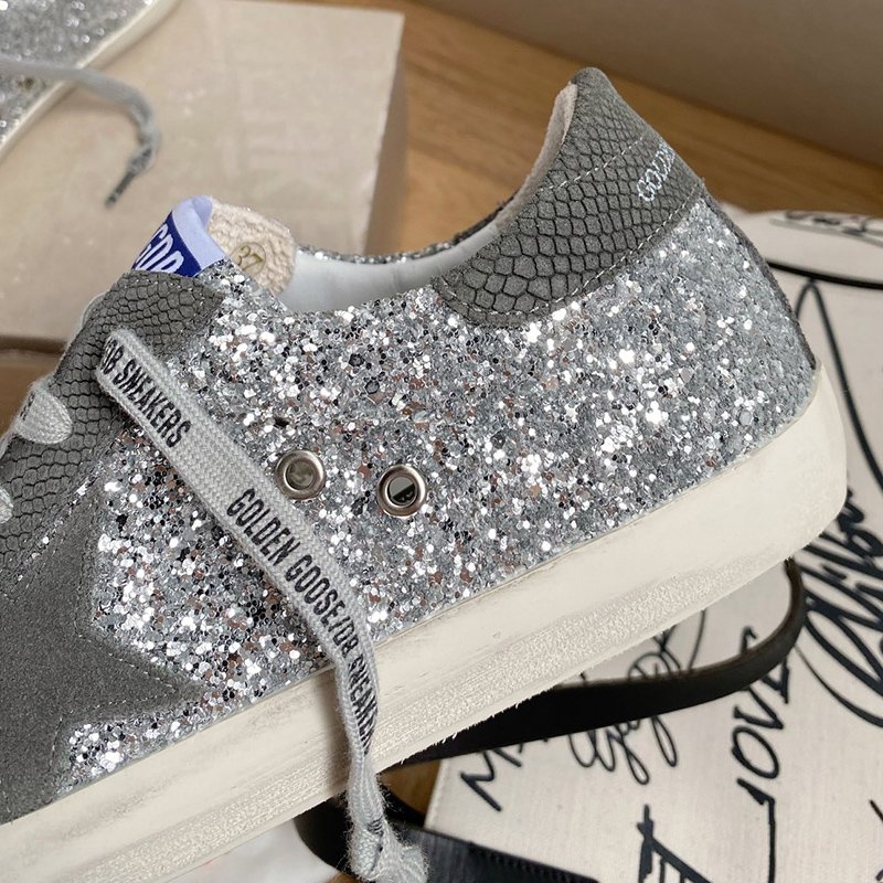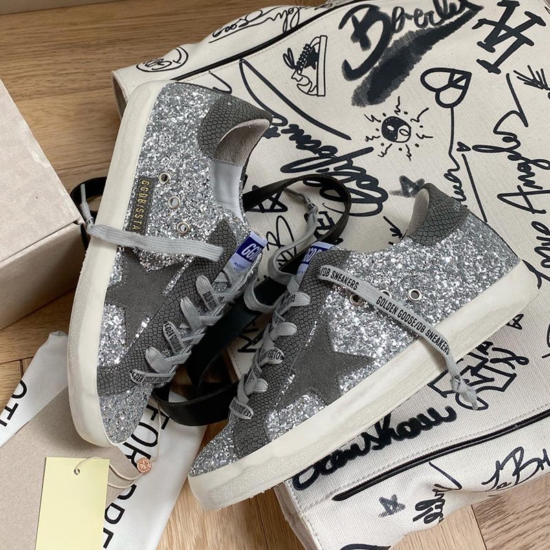 Super-Star with black matte cowhide star and golden matte cowhide leather heel