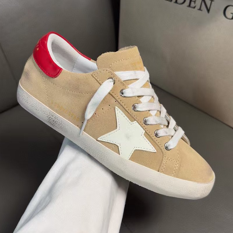 Super-Star with red glitter star and silvery matte cowhide leather heel