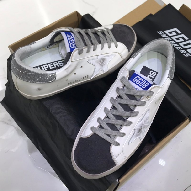 Super-Star with silvery matte cowhide star and golden matte cowhide leather heel