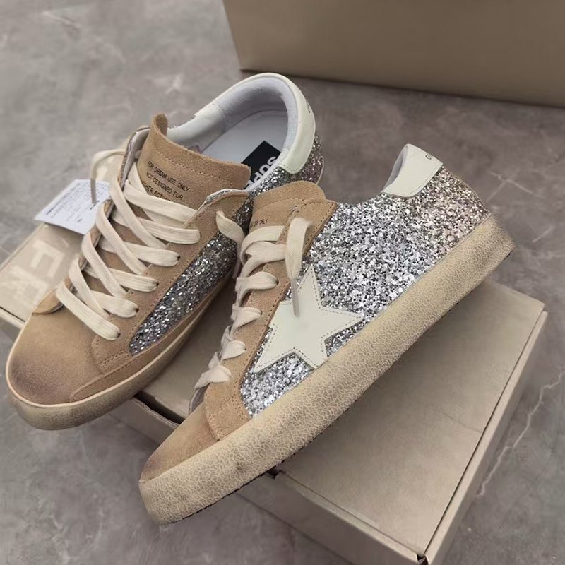 Super-Star with grey suede leather star and beige matte cowhide leather heel
