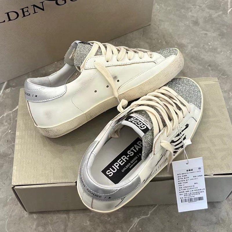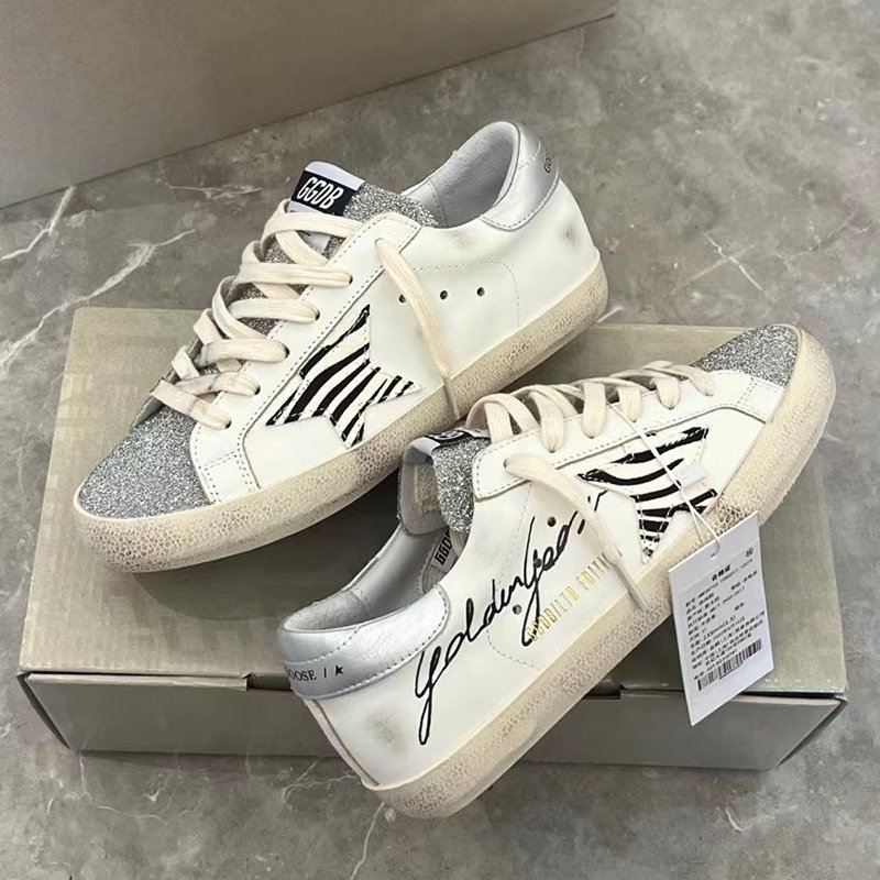 Super-Star with silvery matte cowhide star and black matte cowhide leather heel