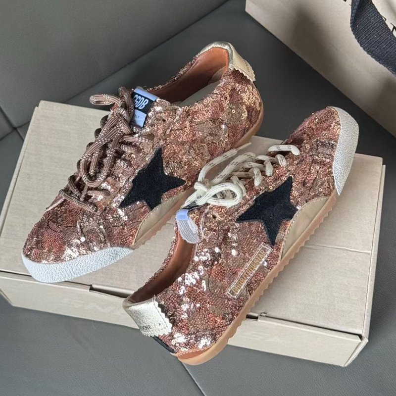 True star with black matte cowhide star and golden matte cowhide leather heel