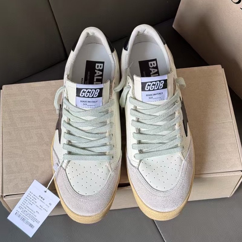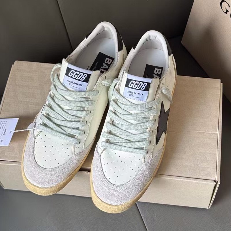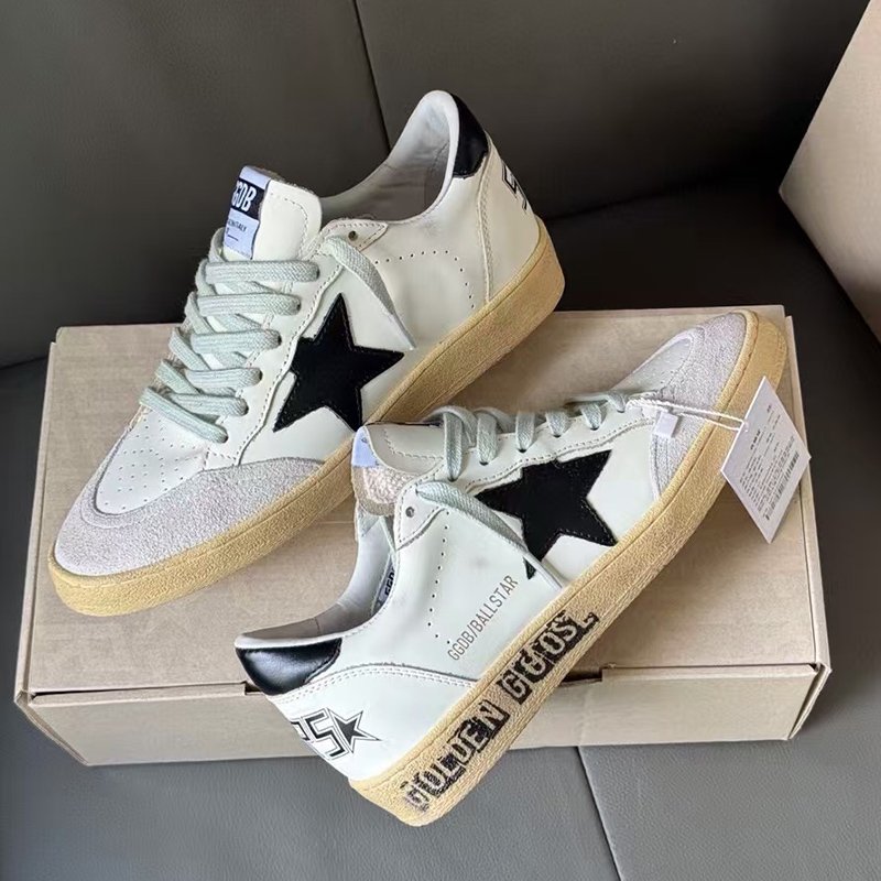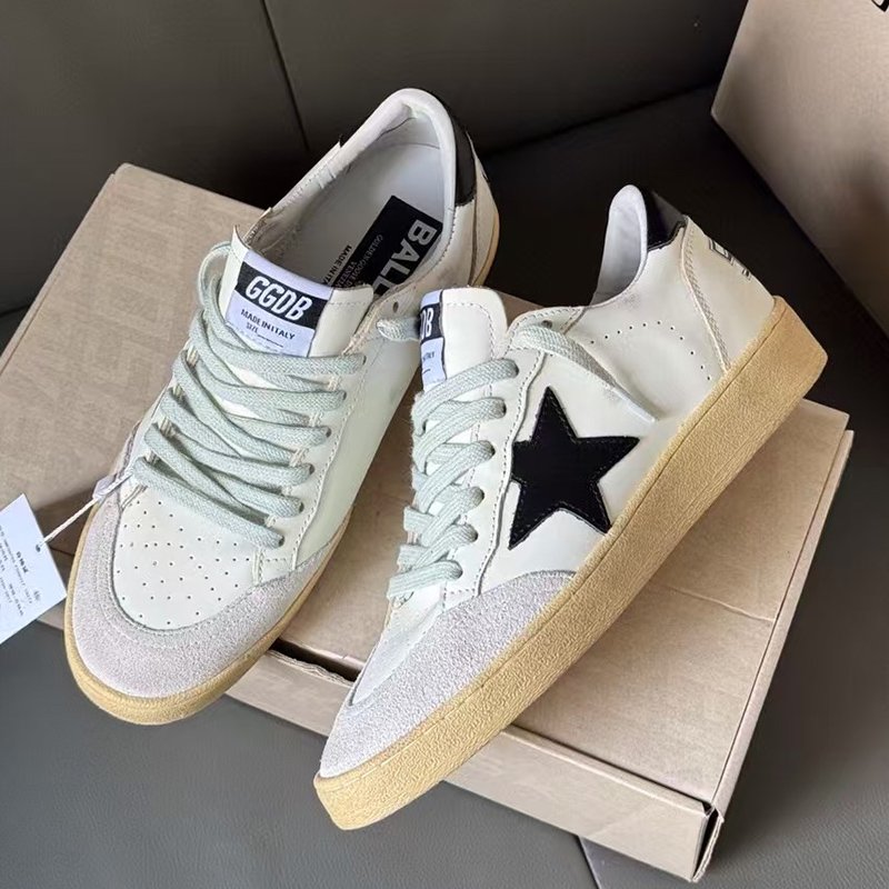Ball-Star with black suede leather star and golden matte cowhide leather heel