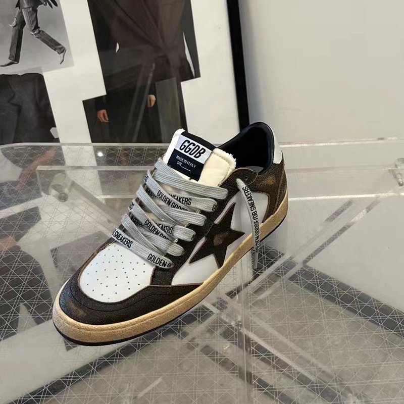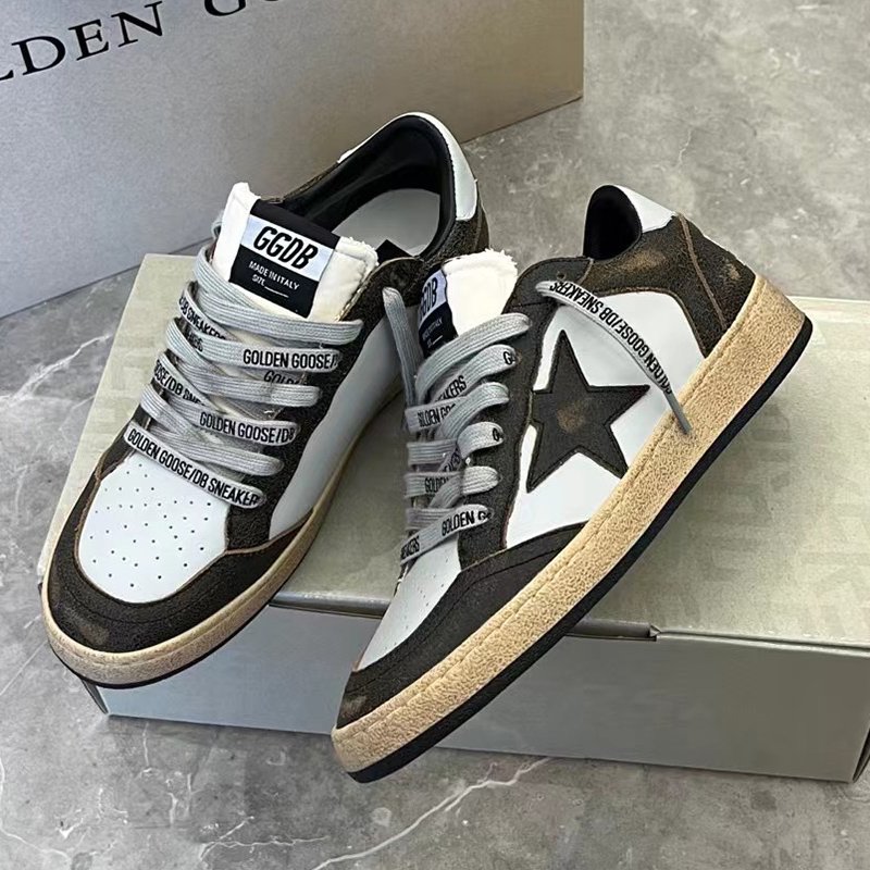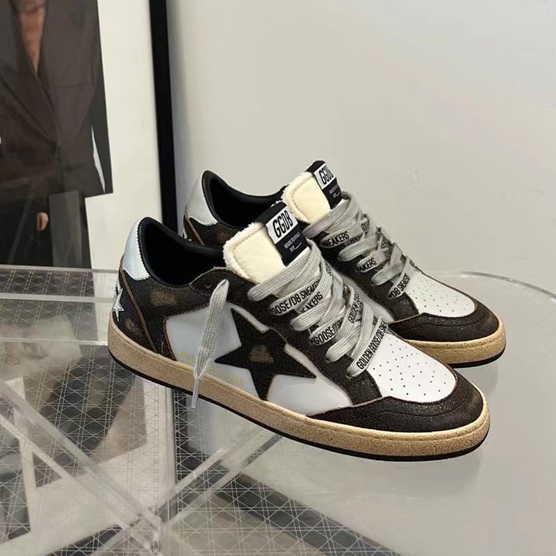 Ball-Star with brown suede leather star and black matte cowhide leather heel