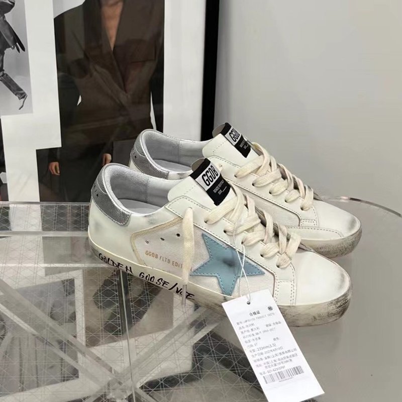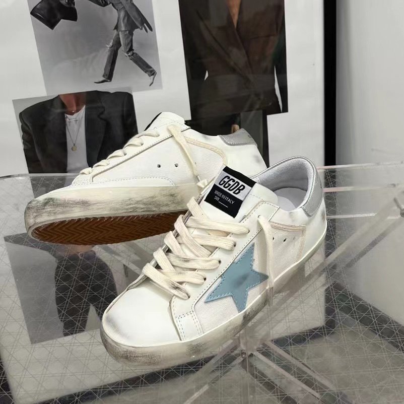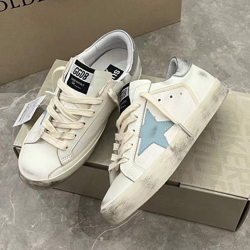 Super-Star with silvery matte cowhide star and white matte cowhide leather heel