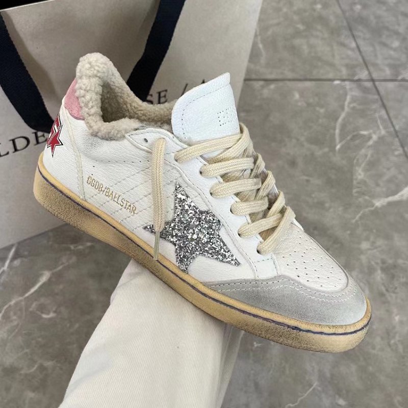 Ball-Star with red matte cowhide star and blue matte cowhide leather heel