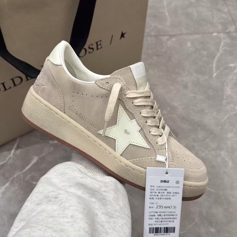 Ball-Star with grey suede leather star and silvery matte cowhide leather heel