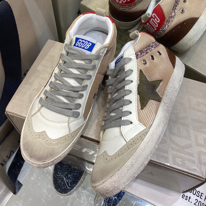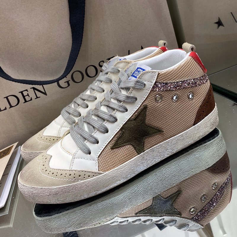 Mid Star with brown suede leather star and red matte cowhide leather heel