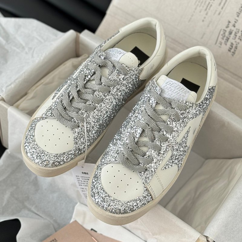 Stardan with silvery glitter star and white matte cowhide leather heel