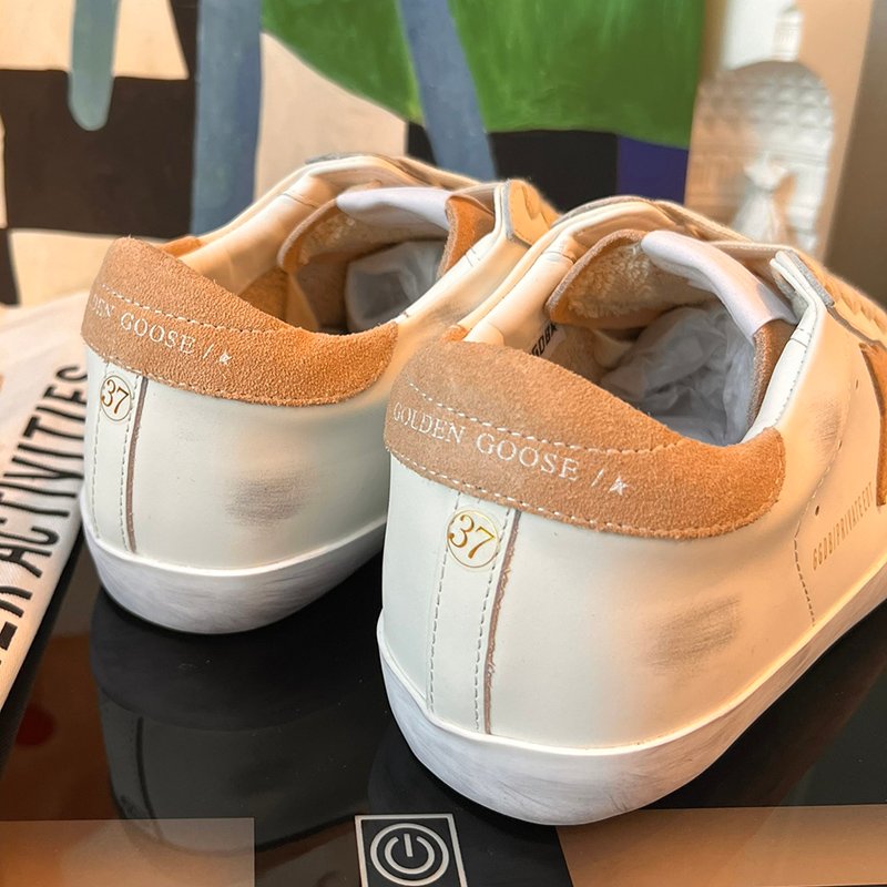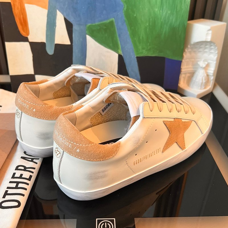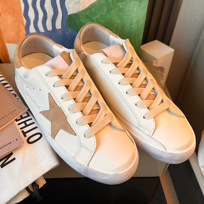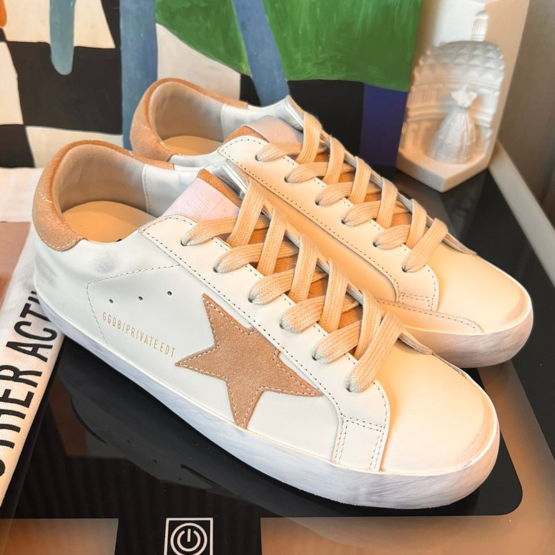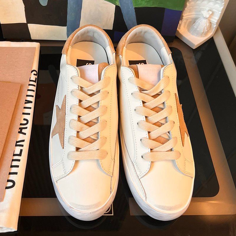 Super-Star with brown fabric star and black matte cowhide leather heel