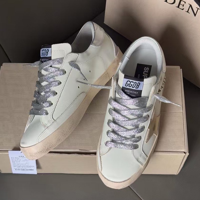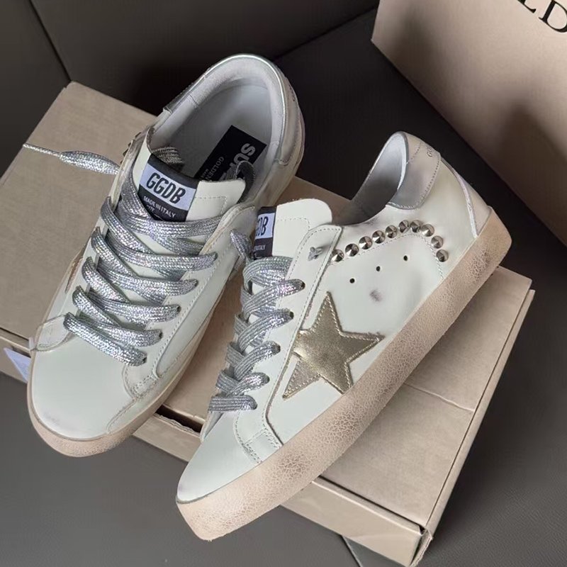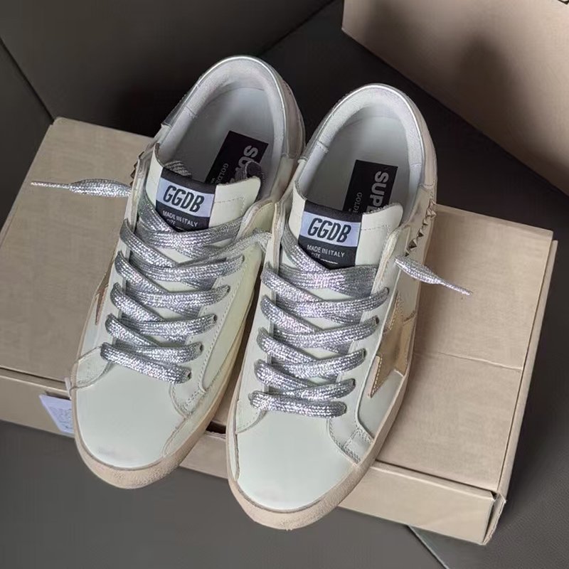 Super-Star with pink matte cowhide star and white matte cowhide leather heel