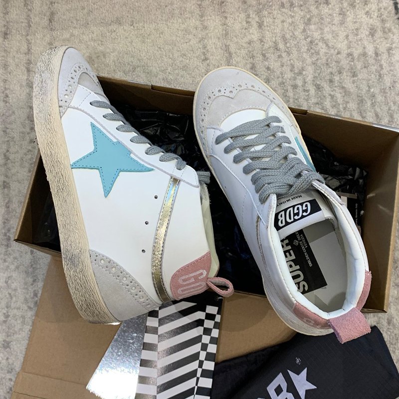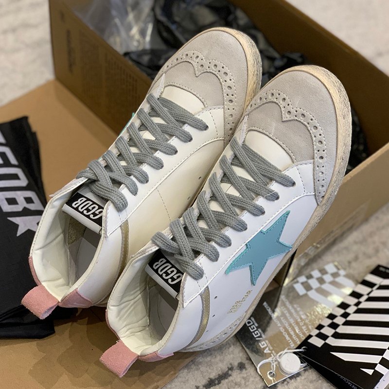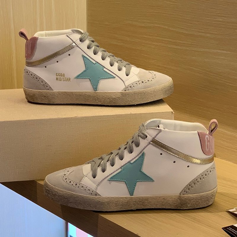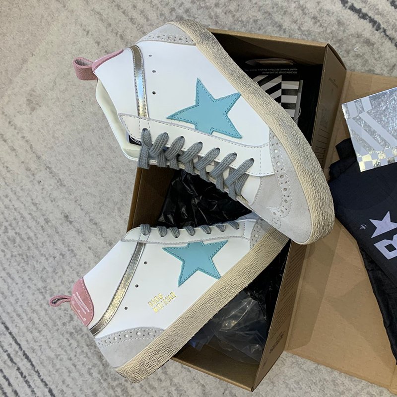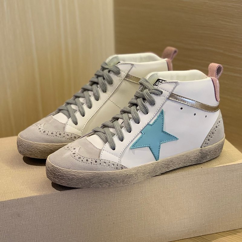Mid Star with blue matte cowhide star and pink suede leather heel