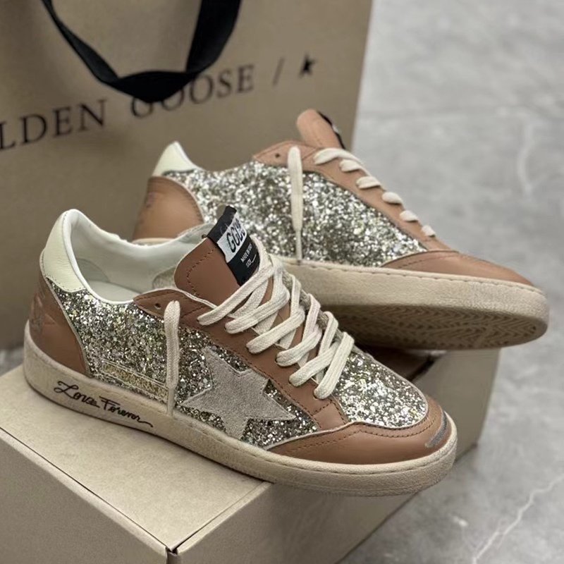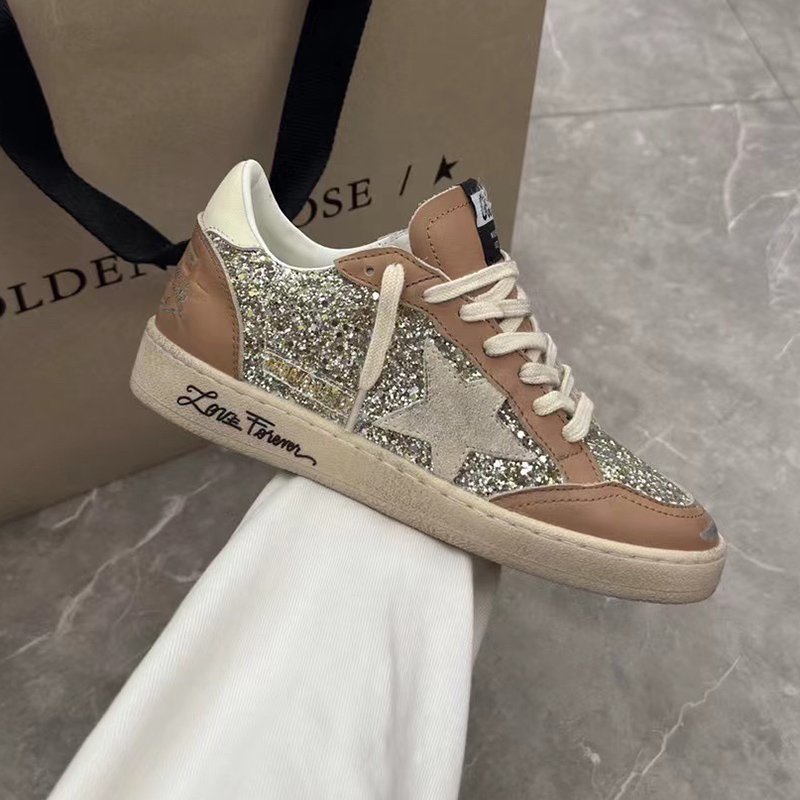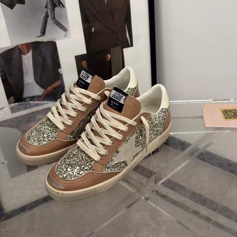 Ball-Star with silvery glitter star and brown matte cowhide leather heel