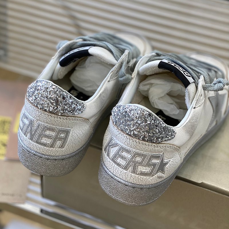 Super-Star with silvery glitter star and yellow matte cowhide leather heel