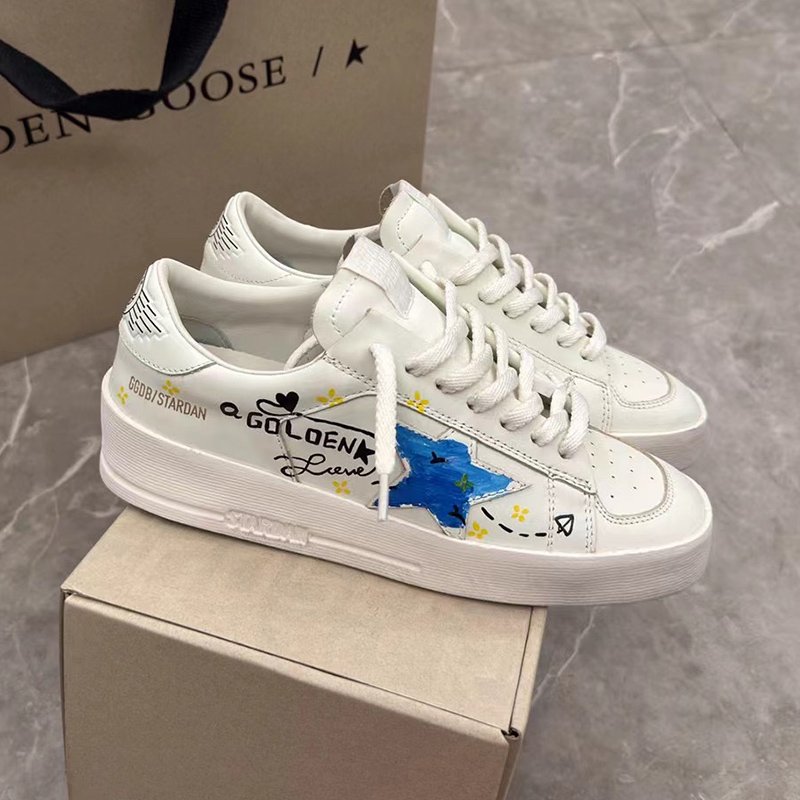 Stardan with blue matte cowhide star and white matte cowhide leather heel