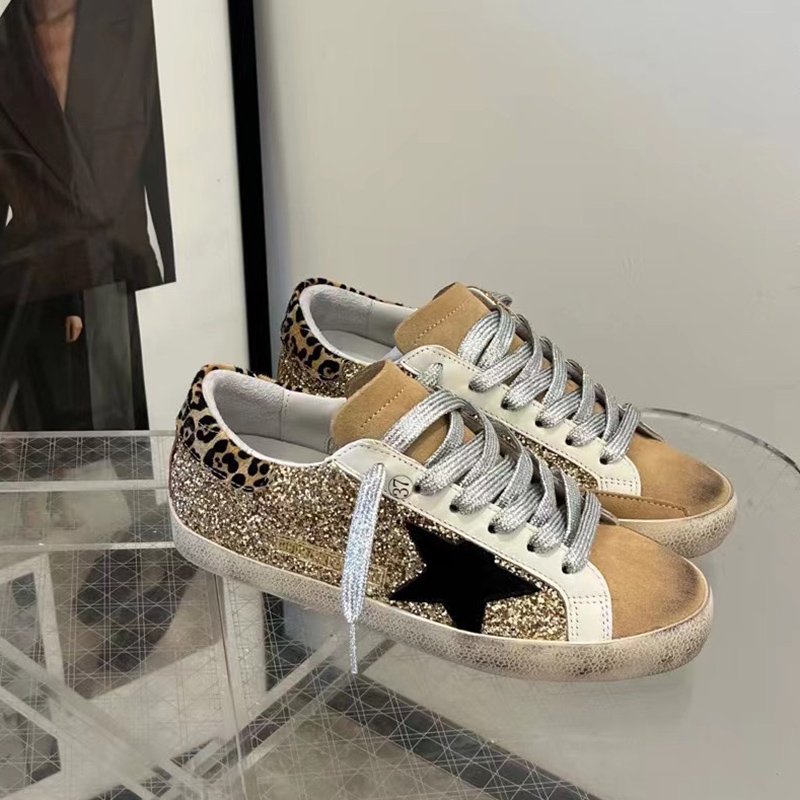 Super-Star with blue matte cowhide star and white matte cowhide leather heel