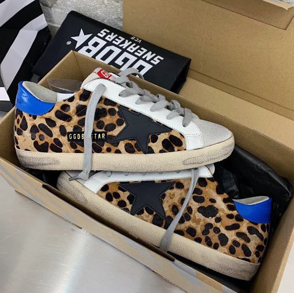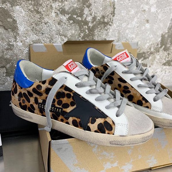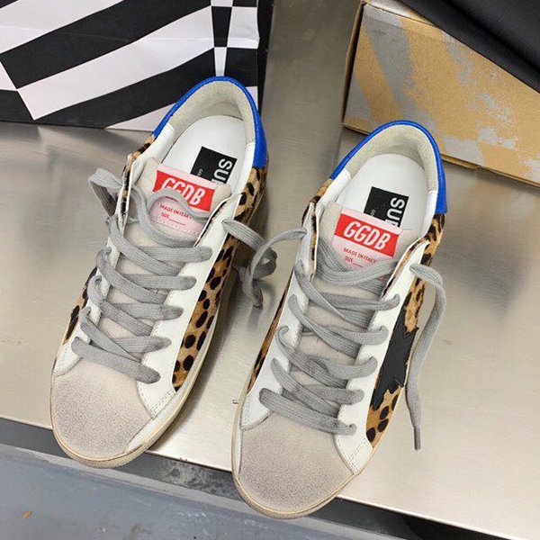 Super-Star with blue matte cowhide star and white matte cowhide leather heel