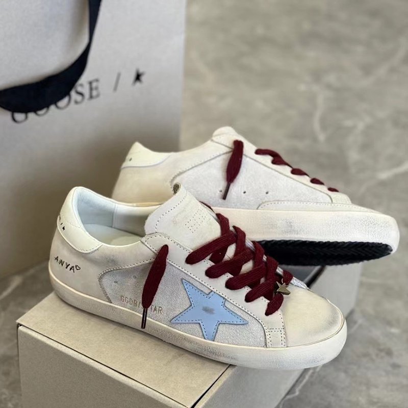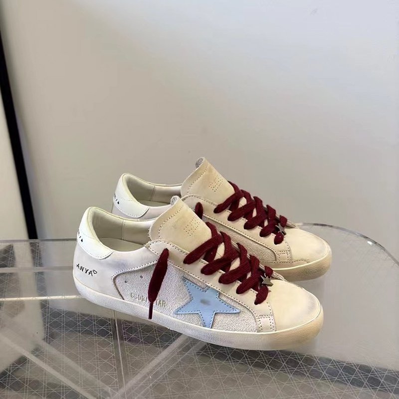 Super-Star with pink suede leather star and blue matte cowhide leather heel