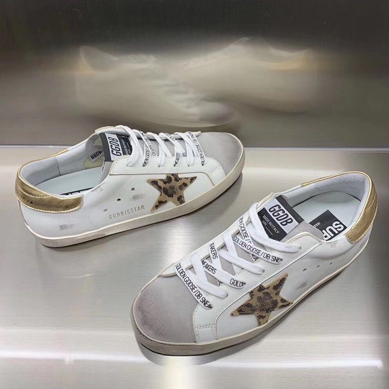Super-Star with leopard print star and blue matte cowhide leather heel