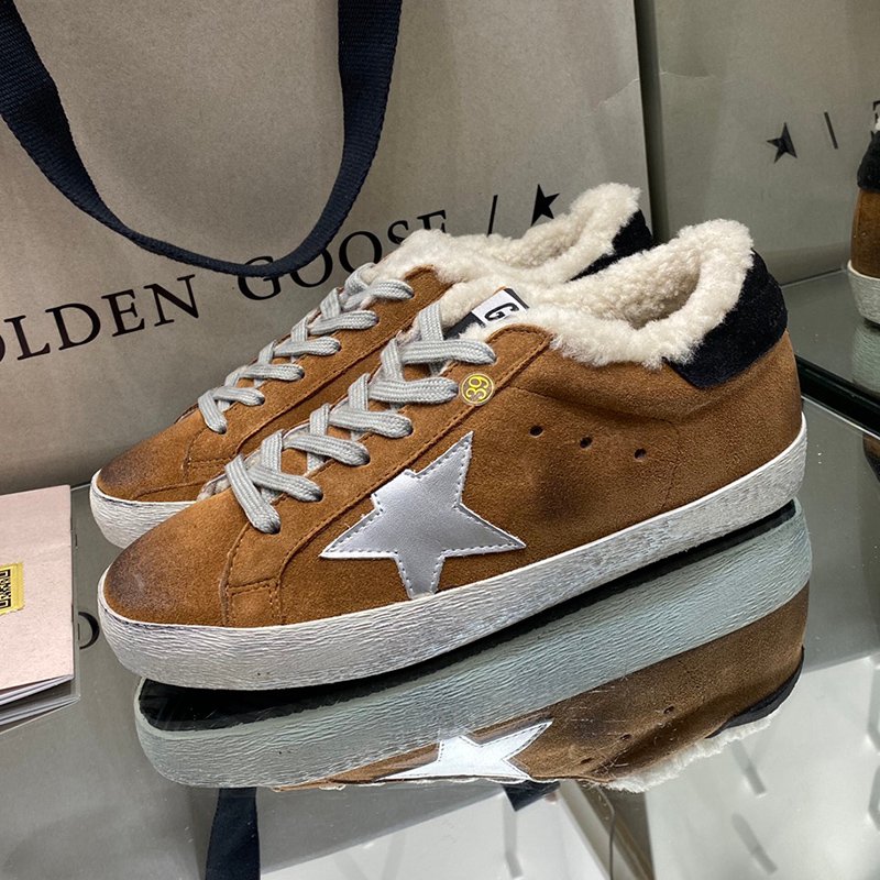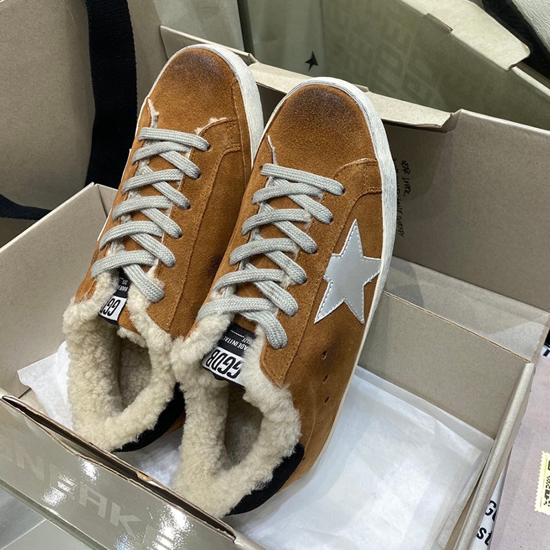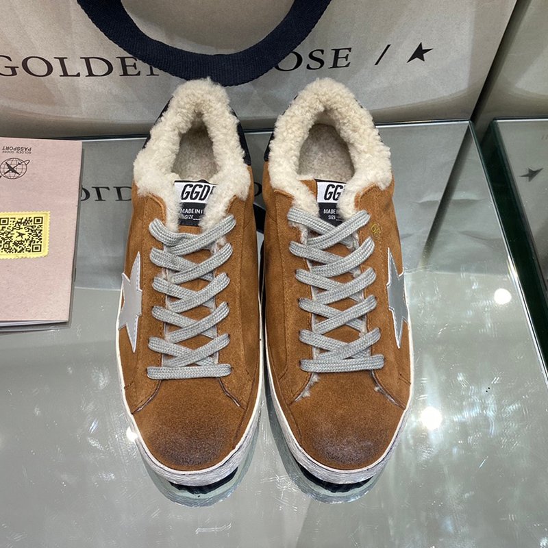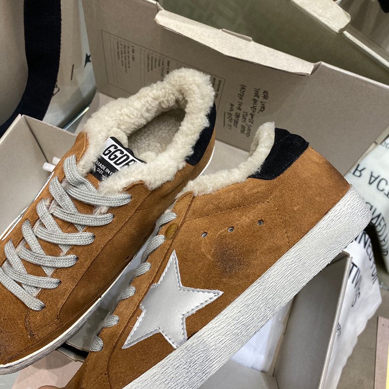 Super-Star with yellow wool star and golden matte cowhide leather heel