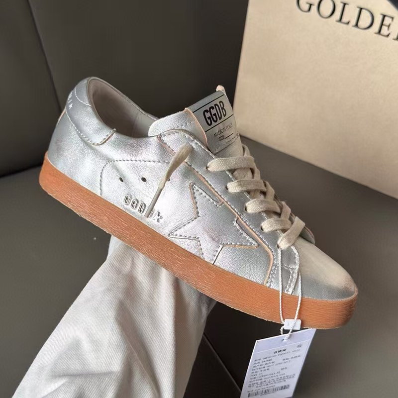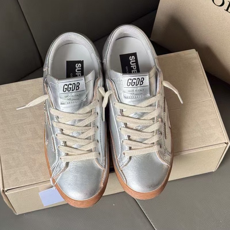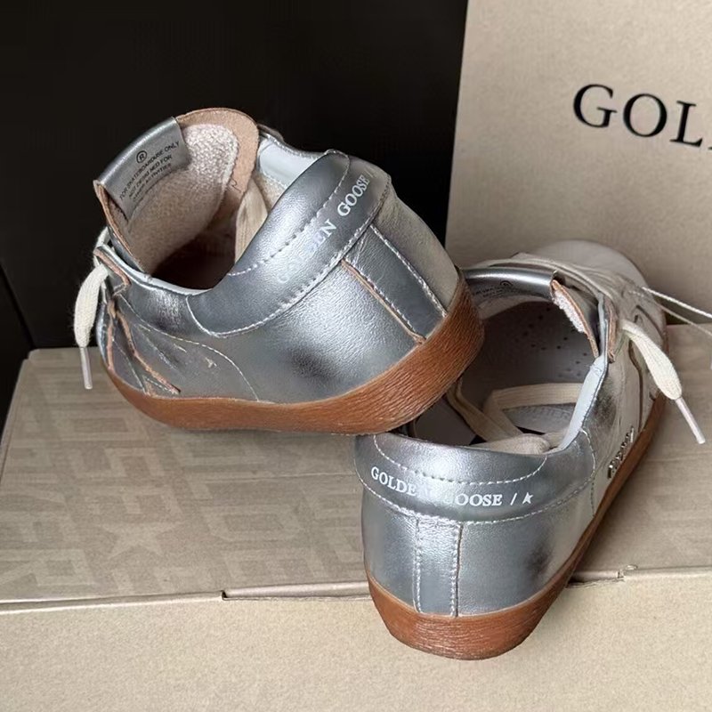 Super-Star with silvery matte cowhide star and pink matte cowhide leather heel