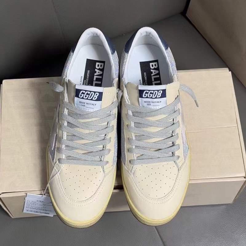 Ball-Star with yellow fabric star and white matte cowhide leather heel