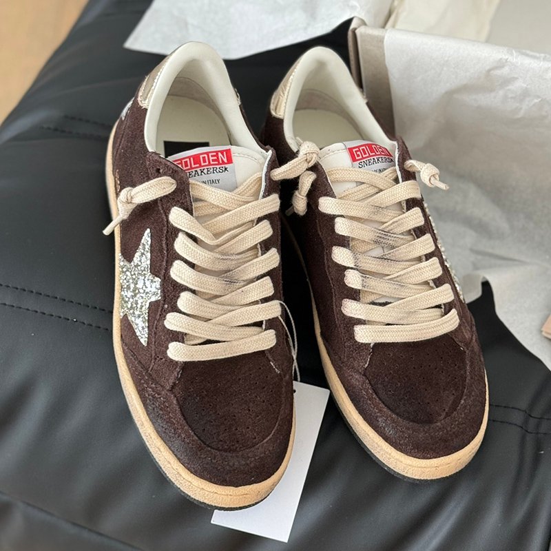 Ball-Star with grey suede leather star and black matte cowhide leather heel