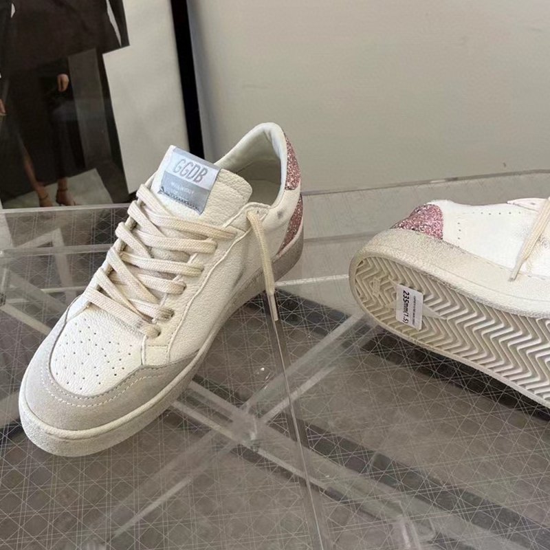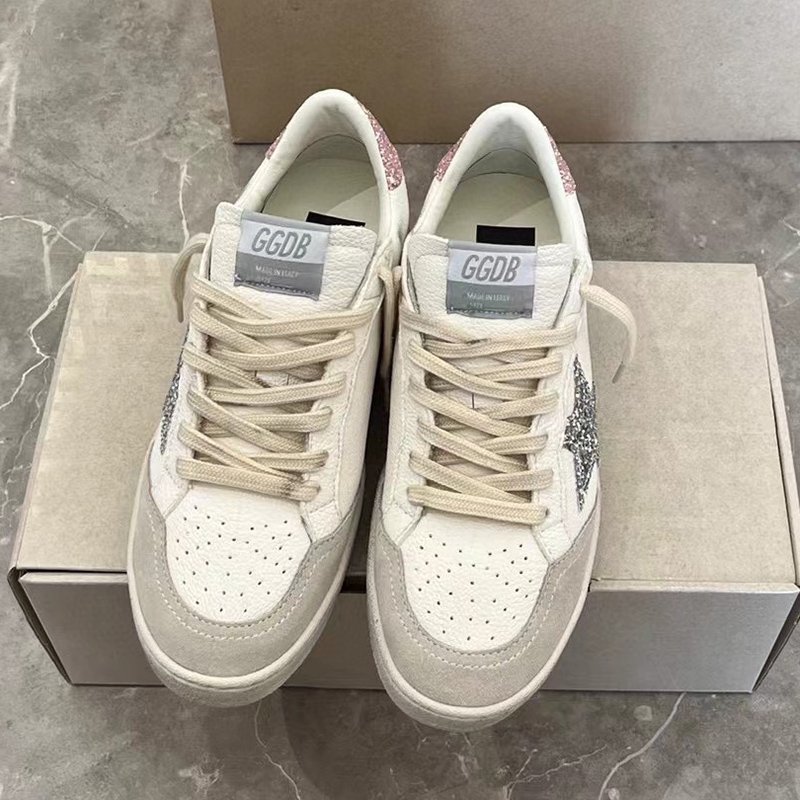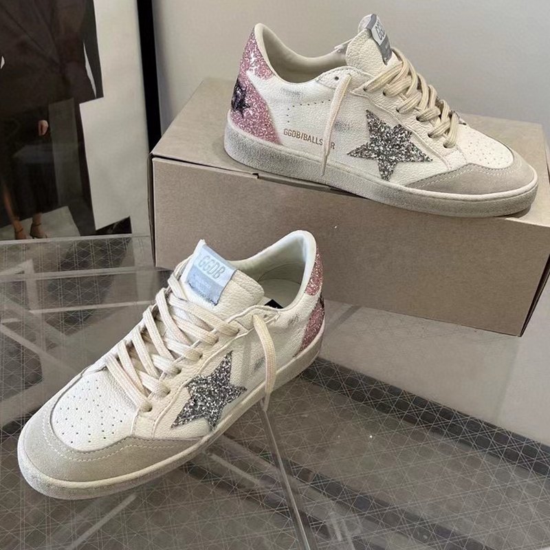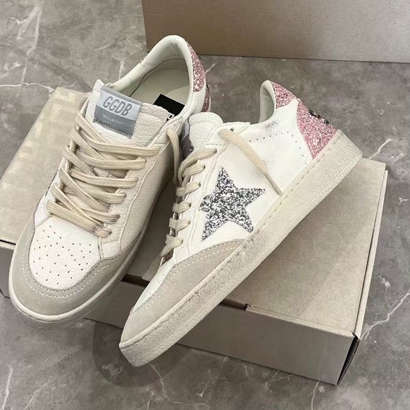 Ball-Star with red matte cowhide star and pink glitter heel