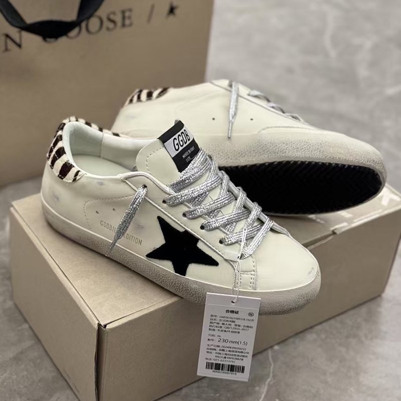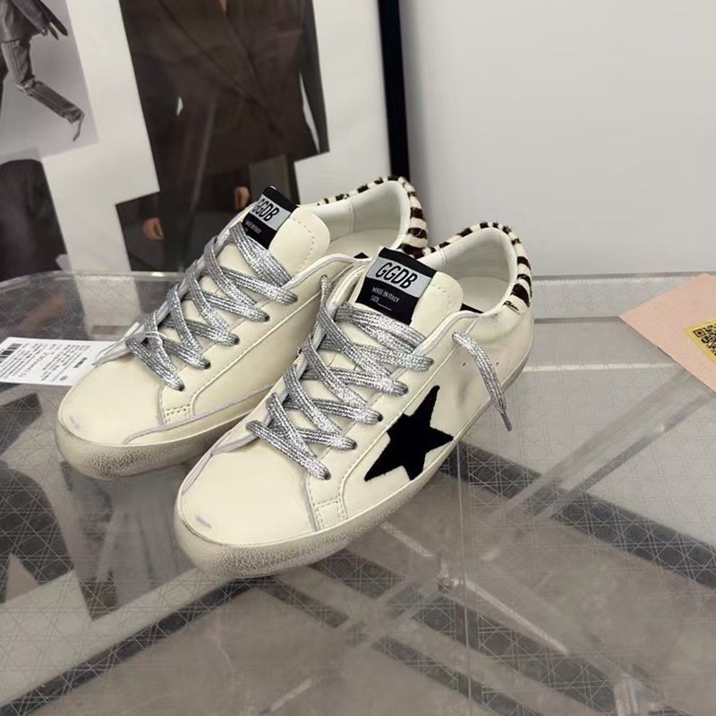 Super-Star with white matte cowhide star and black matte cowhide leather heel