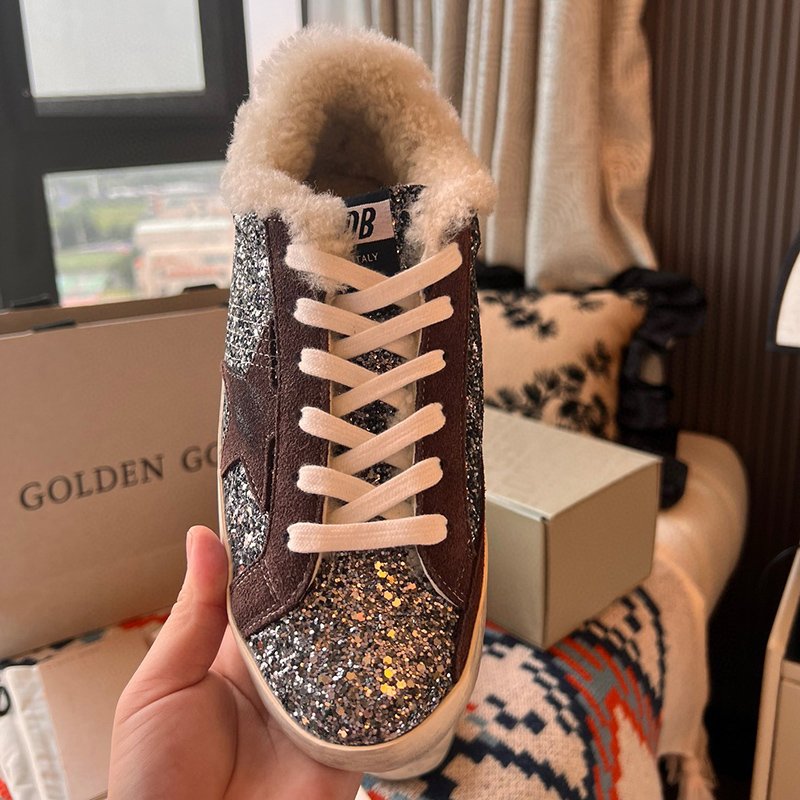 Super-Star with pink glitter star and beige wool heel