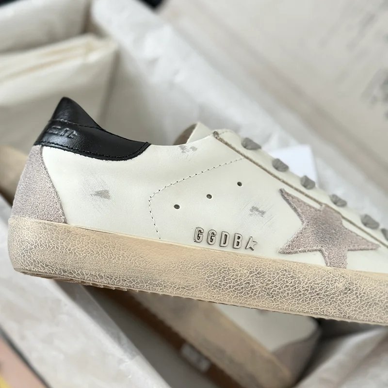 Super-Star with golden glitter star and silver matte cowhide leather heel