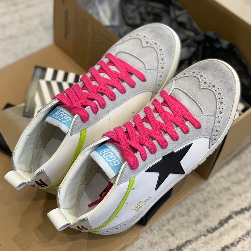 Mid Star with black matte cowhide star and silvery matte cowhide leather heel