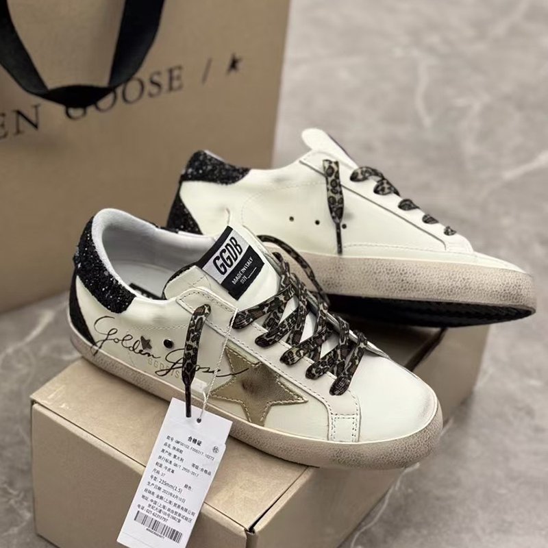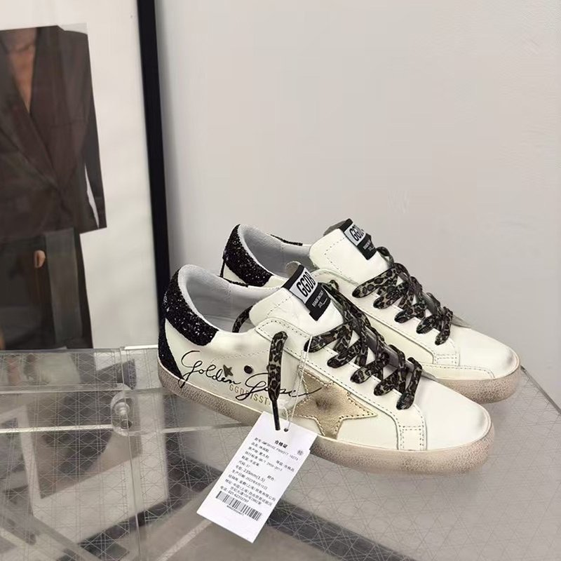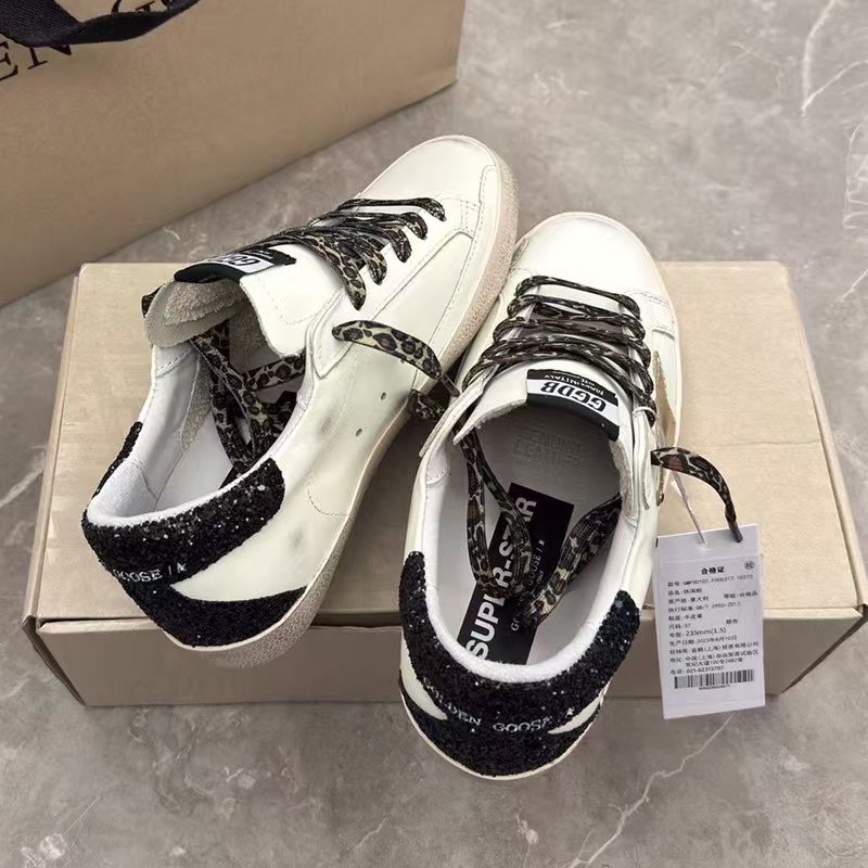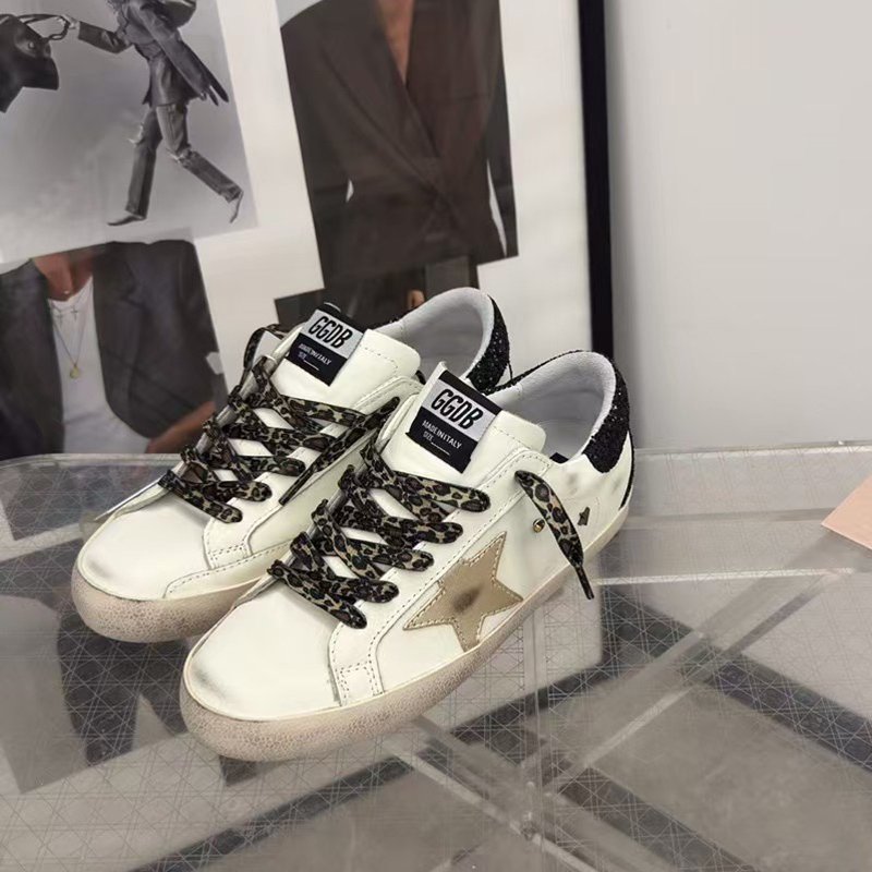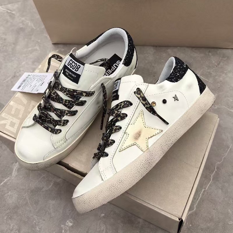 Super-Star with black suede leather star and white matte cowhide leather heel