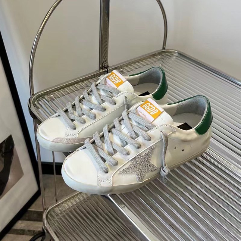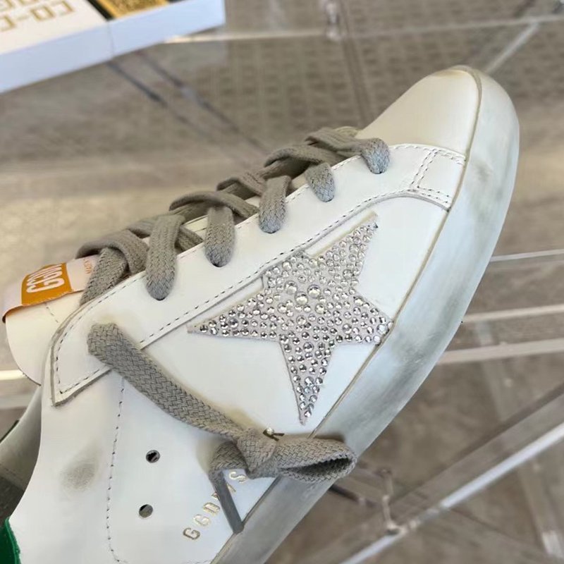 Super-Star with silvery glitter star and golden matte cowhide leather heel